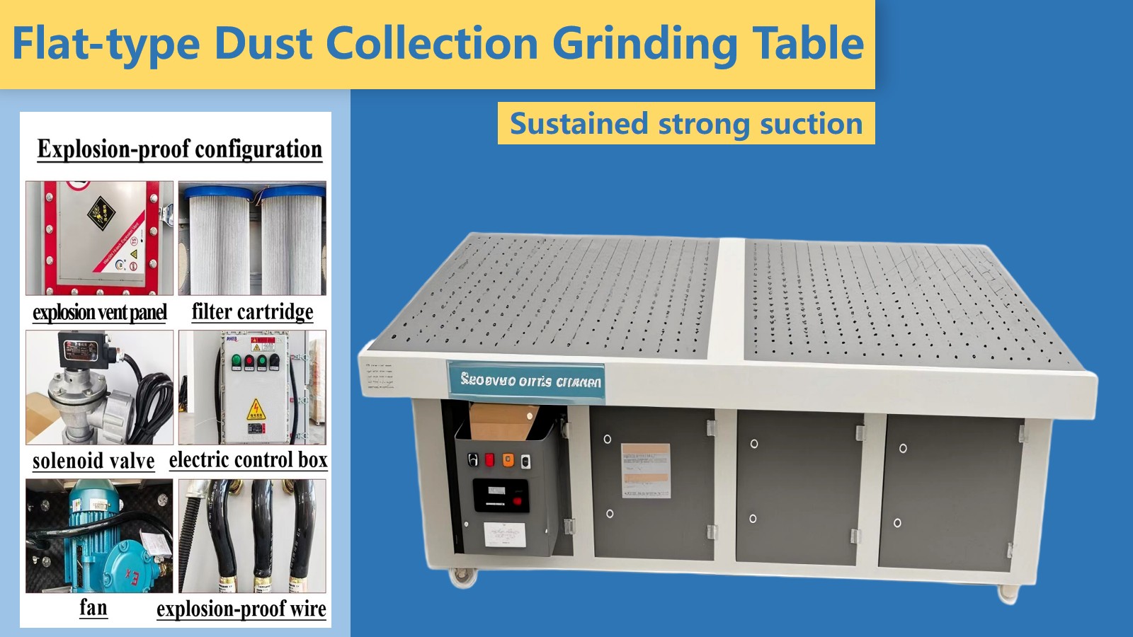 環境に優しく効率的:平らな吸塵サンディングテーブルは、研削源の粉塵を除去し、粉塵の飛散を効果的に制御し、環境への粉塵汚染とオペレーターの健康への悪影響を軽減します。